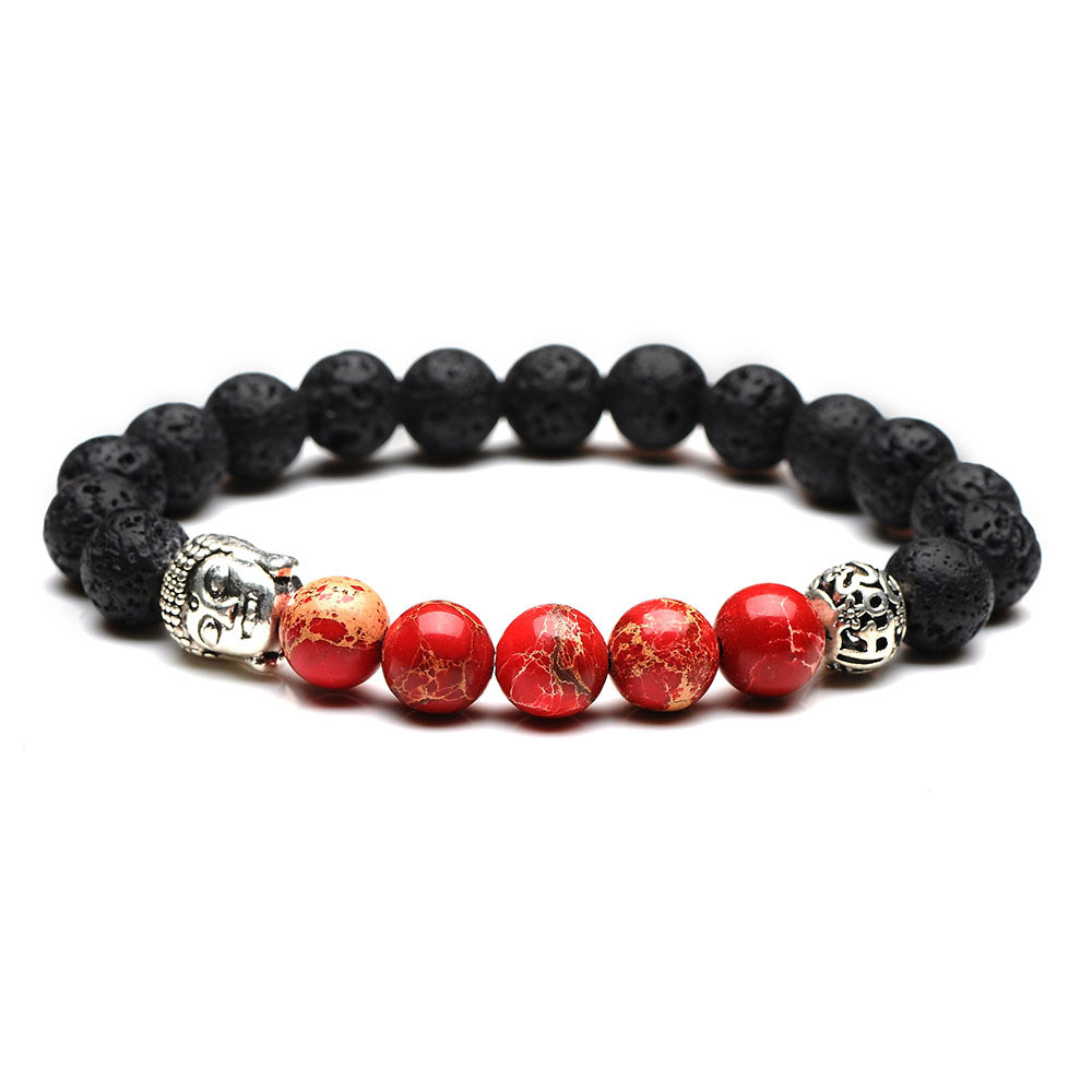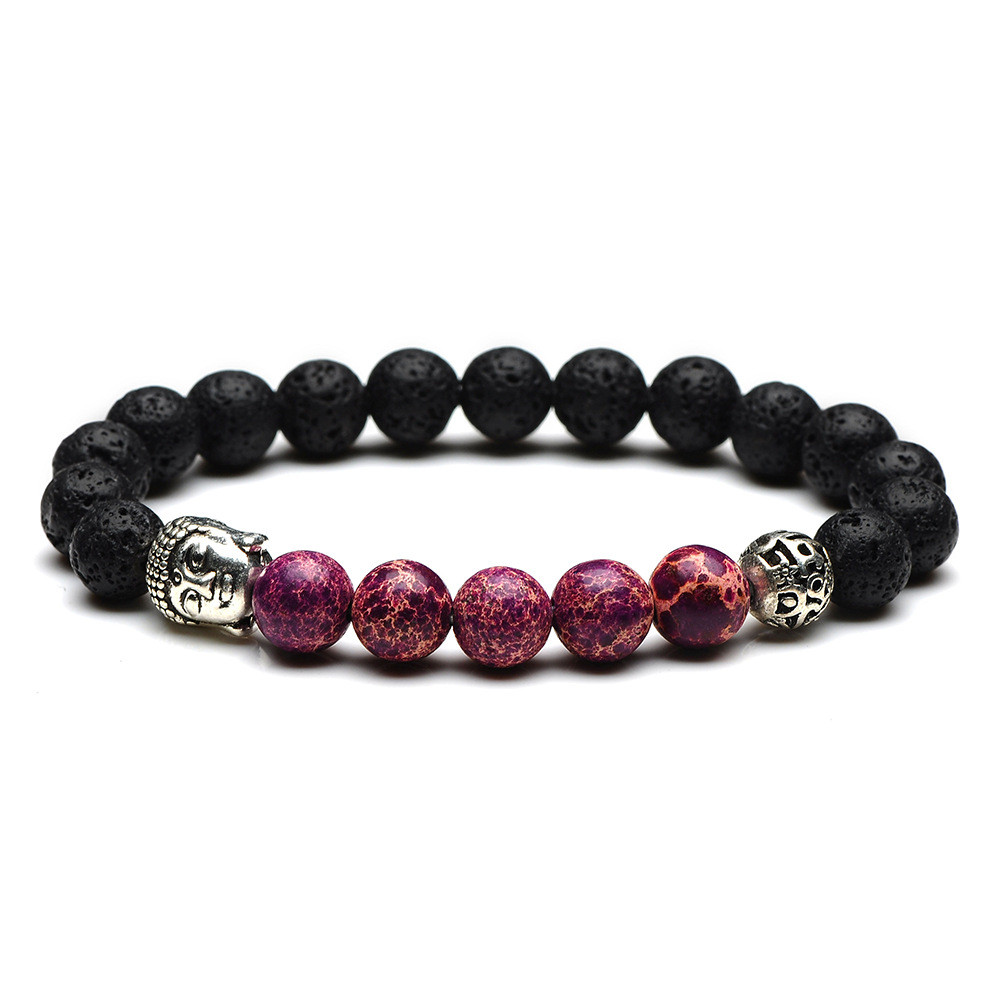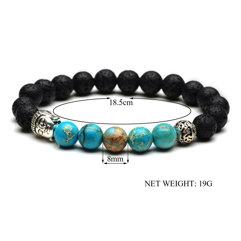 Ancient silver Buddha head 8mm natural stone hollow ball beads bracelet