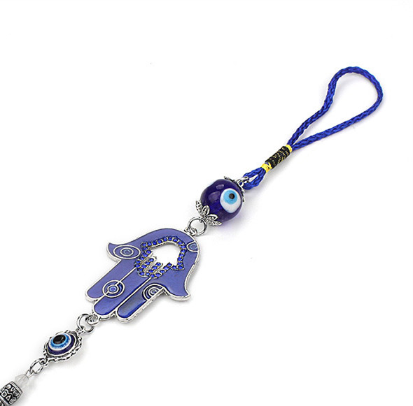 Blue Eyes Hand of Fatima Tassel Pendant Keychain